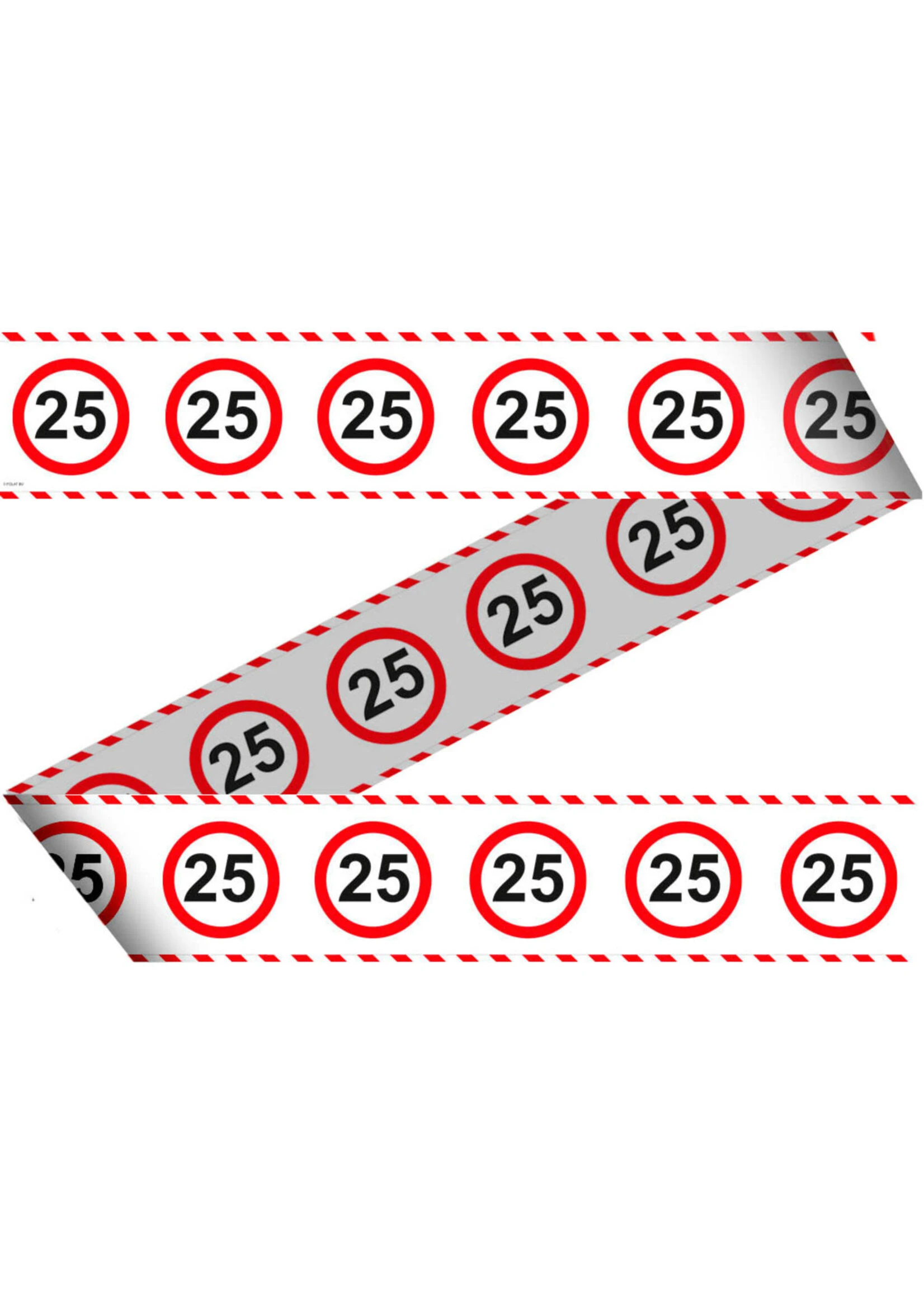 Versier de feestruimte met dit leuke afzetlint met de cijfers 25 erop, het is rood zwart wit en maar liefst 15 mtr.