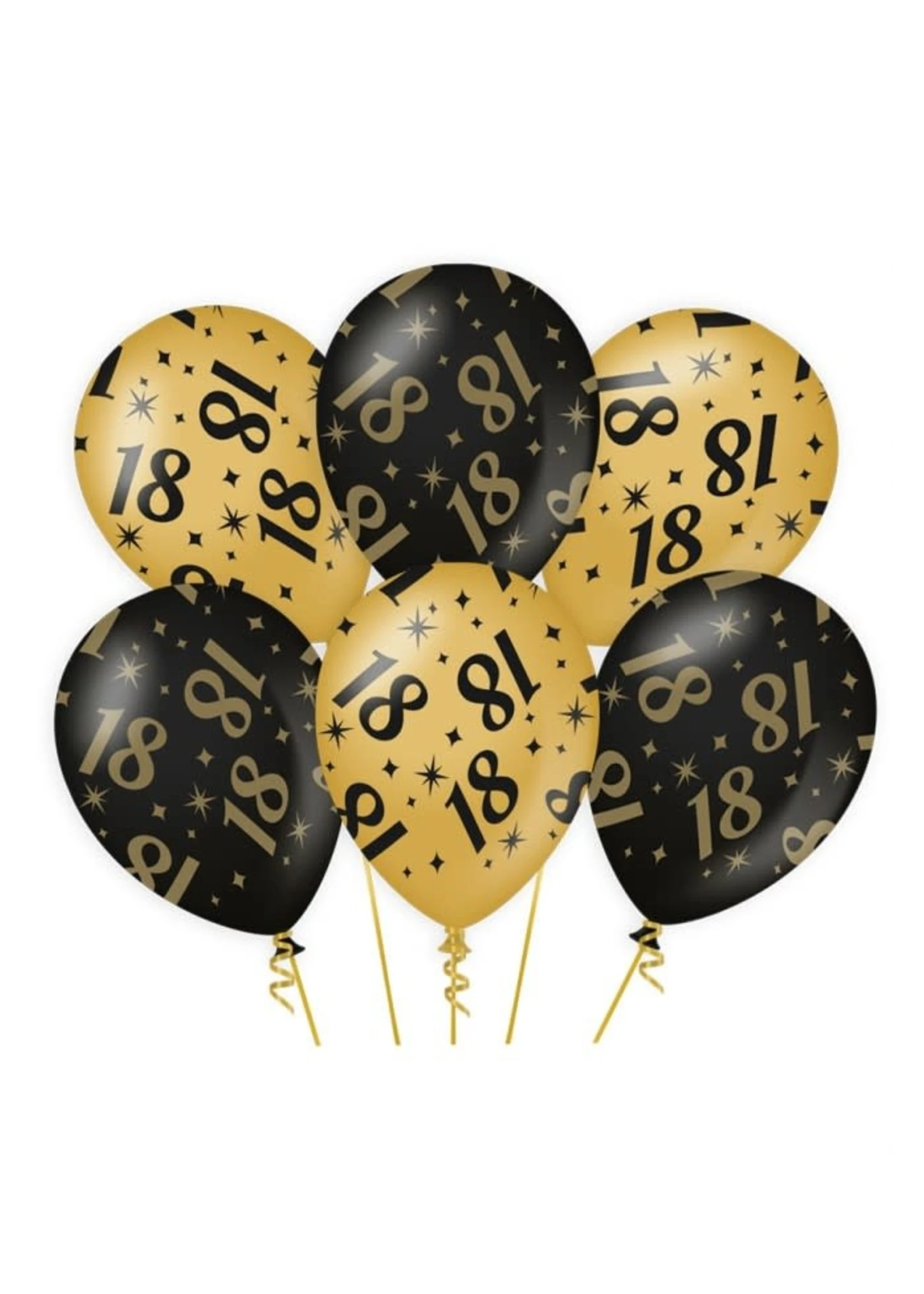 Mooie latex ballonnen met 18 er op deze hebben een luxe uitstraling door het unieke kleurgebruik van zwart met goud.