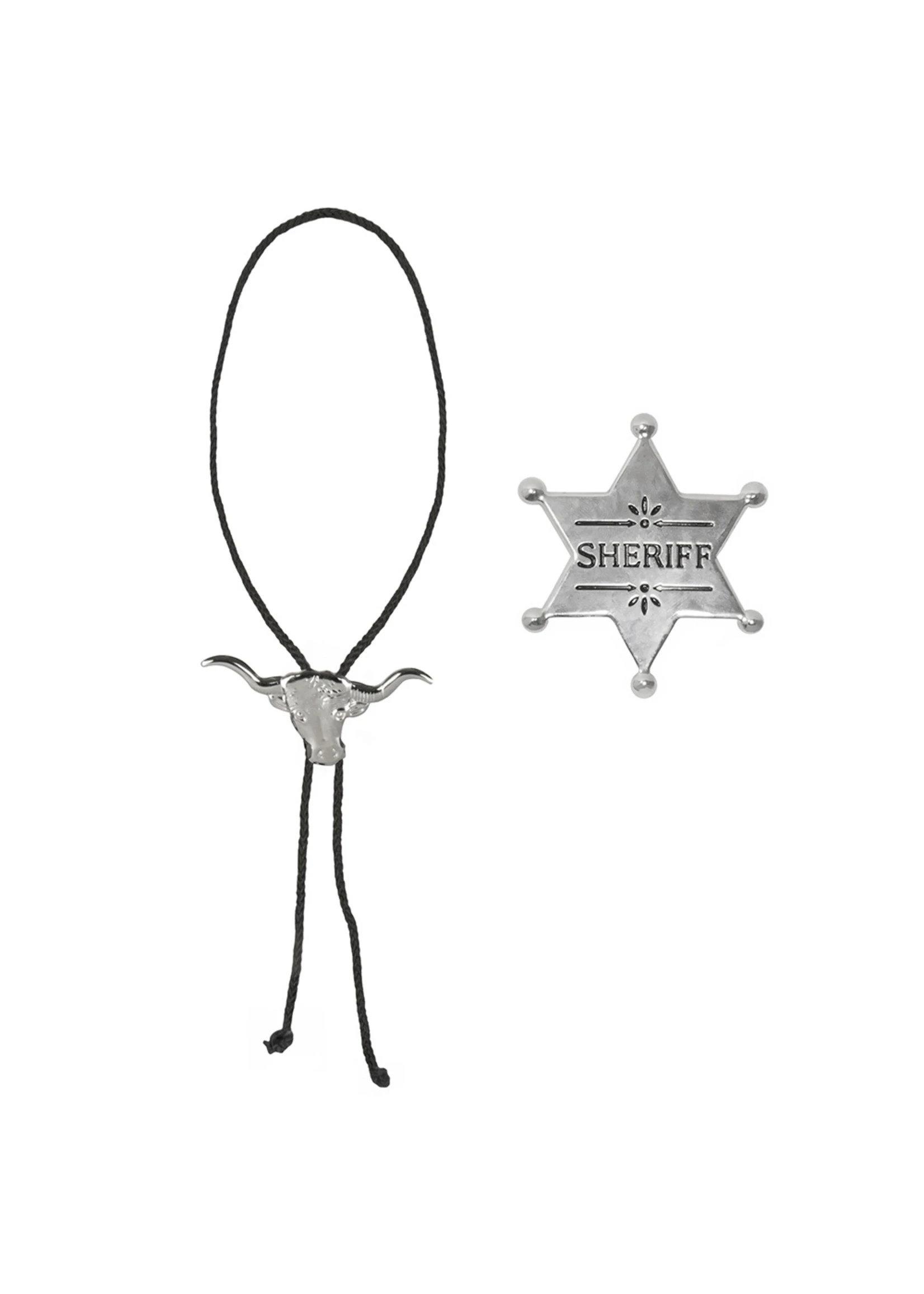 2-delige set, bestaande uit een ketting met een stierenkop en een sheriff ster.