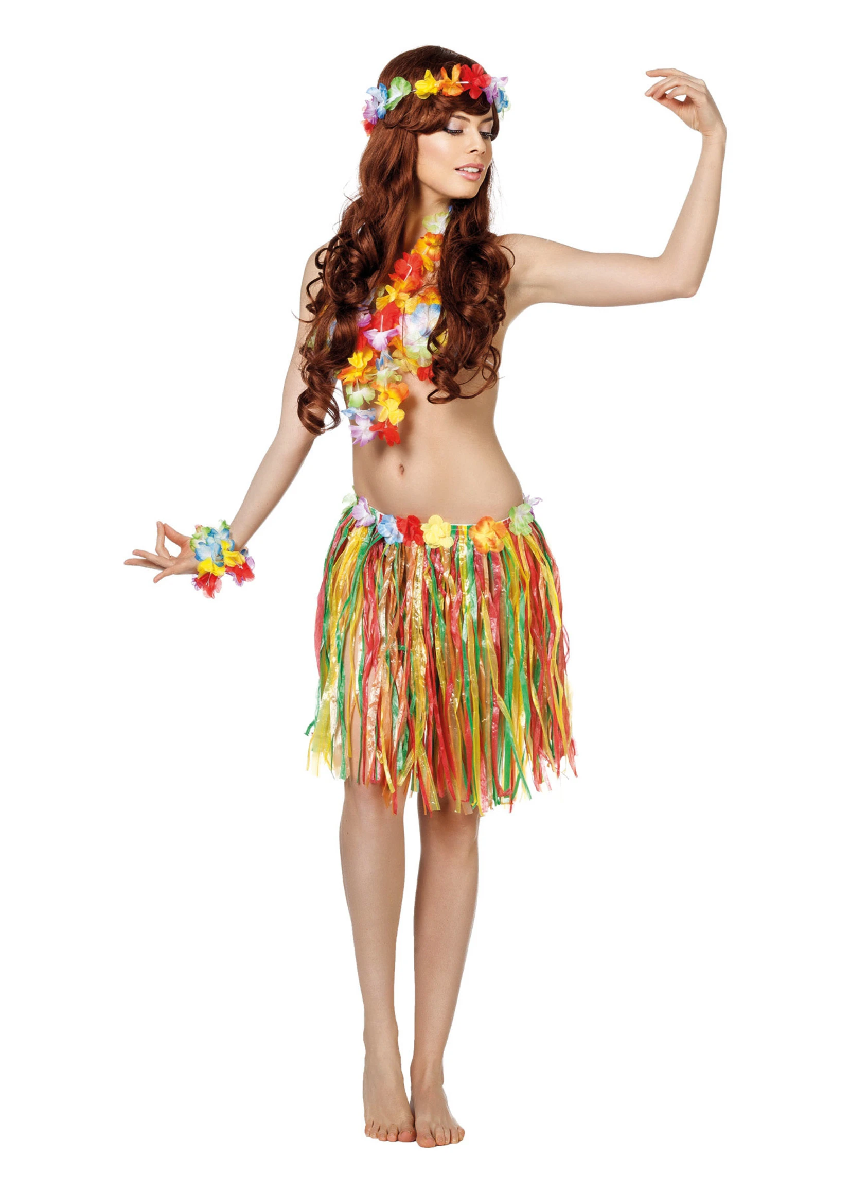 Leuke Hawaii set deze is 6-delig: Rokje, Hoofdband, Ketting, beha en 2 armbanden.