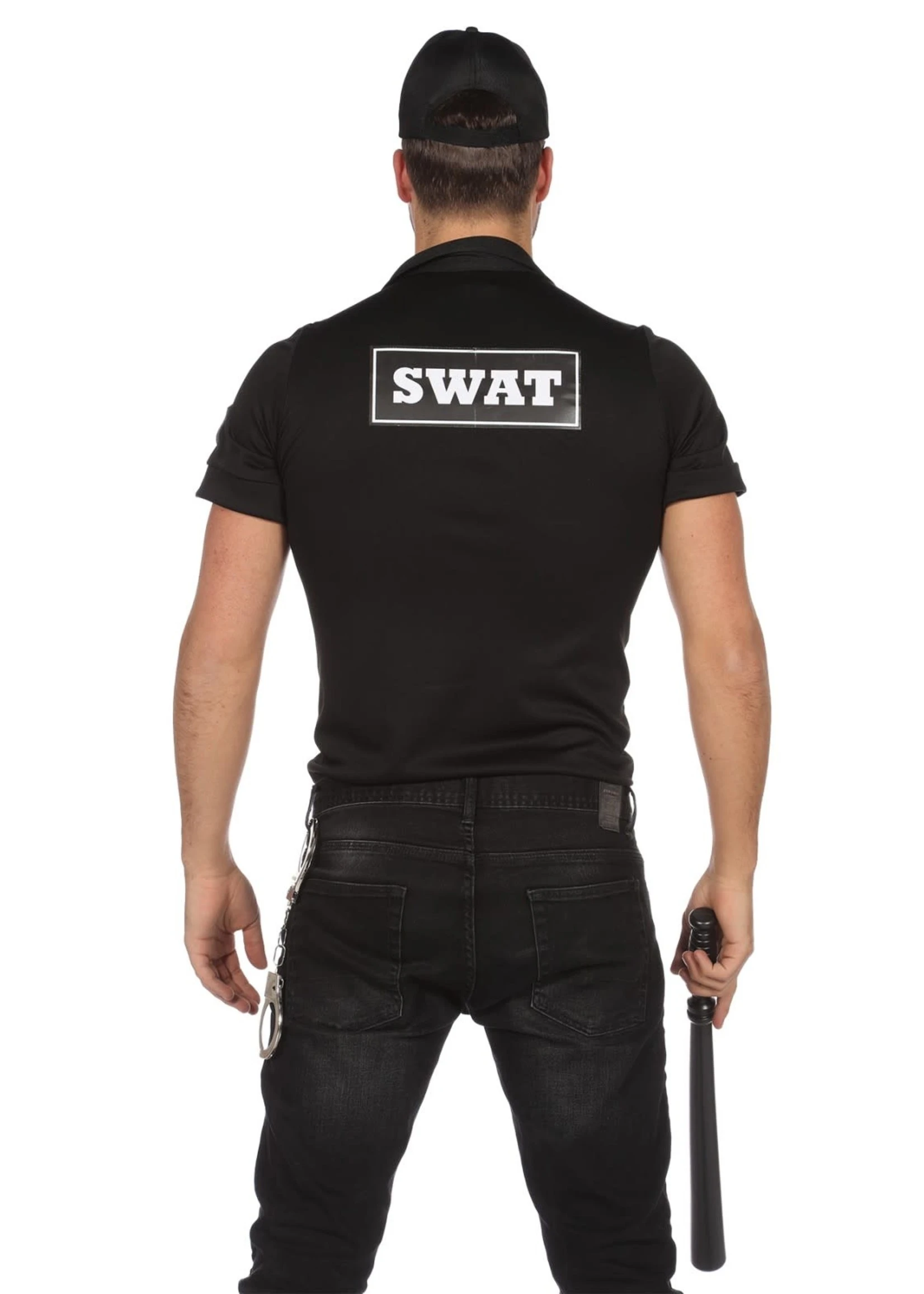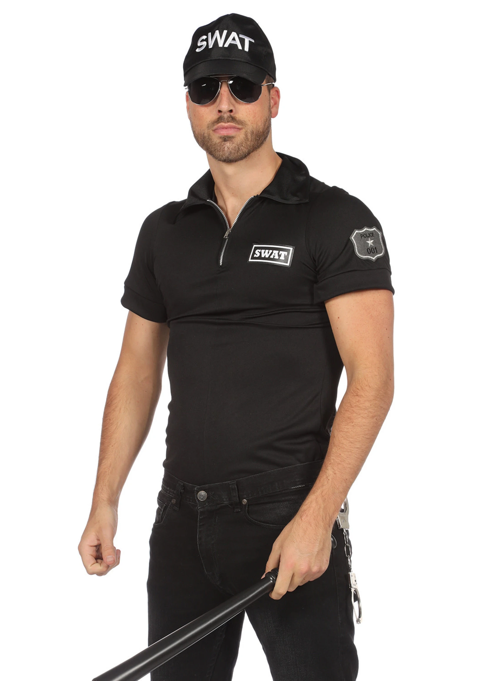 Zwart SWAT-shirt makkelijk te dragen op een spijkerbroek.