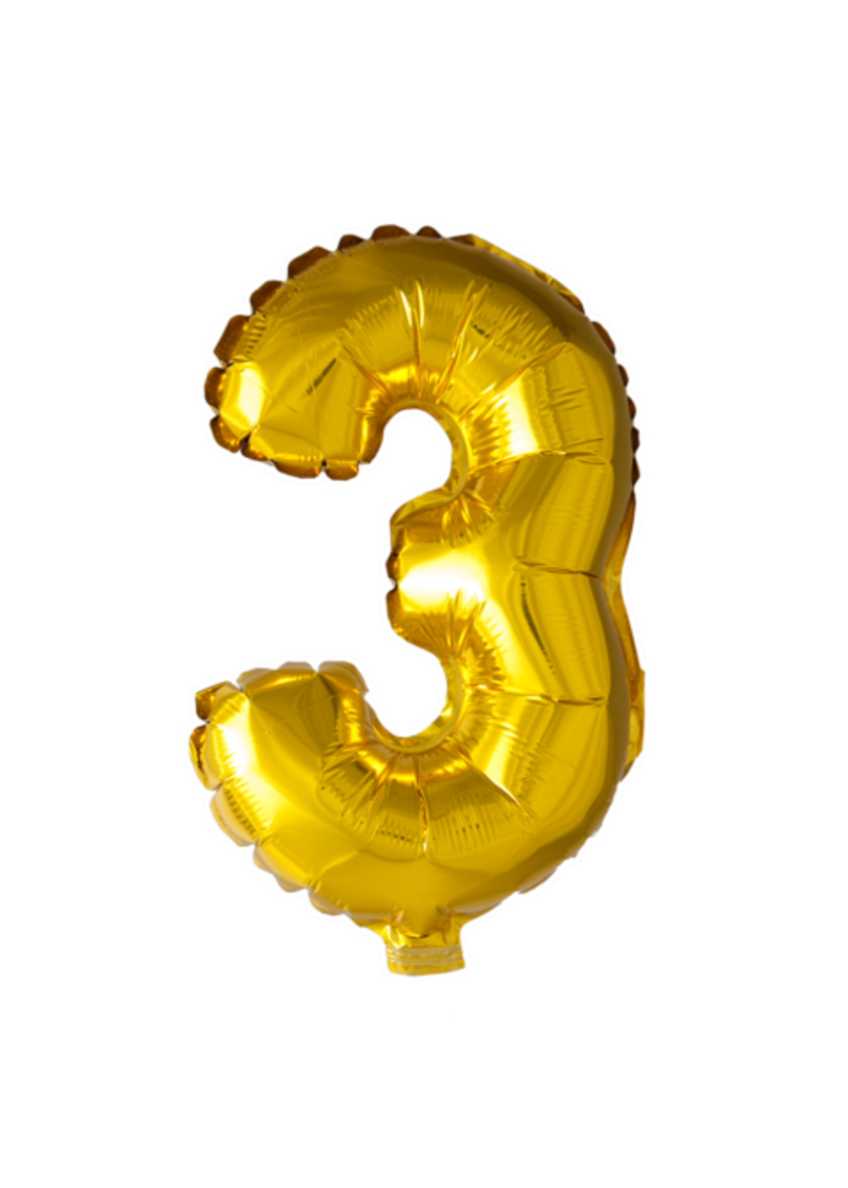 Gouden cijfer 3 ballon leuk om cadeau te geven aan iemand die 3 jaar wordt of een 3 jarig jubileum te vieren heeft.
