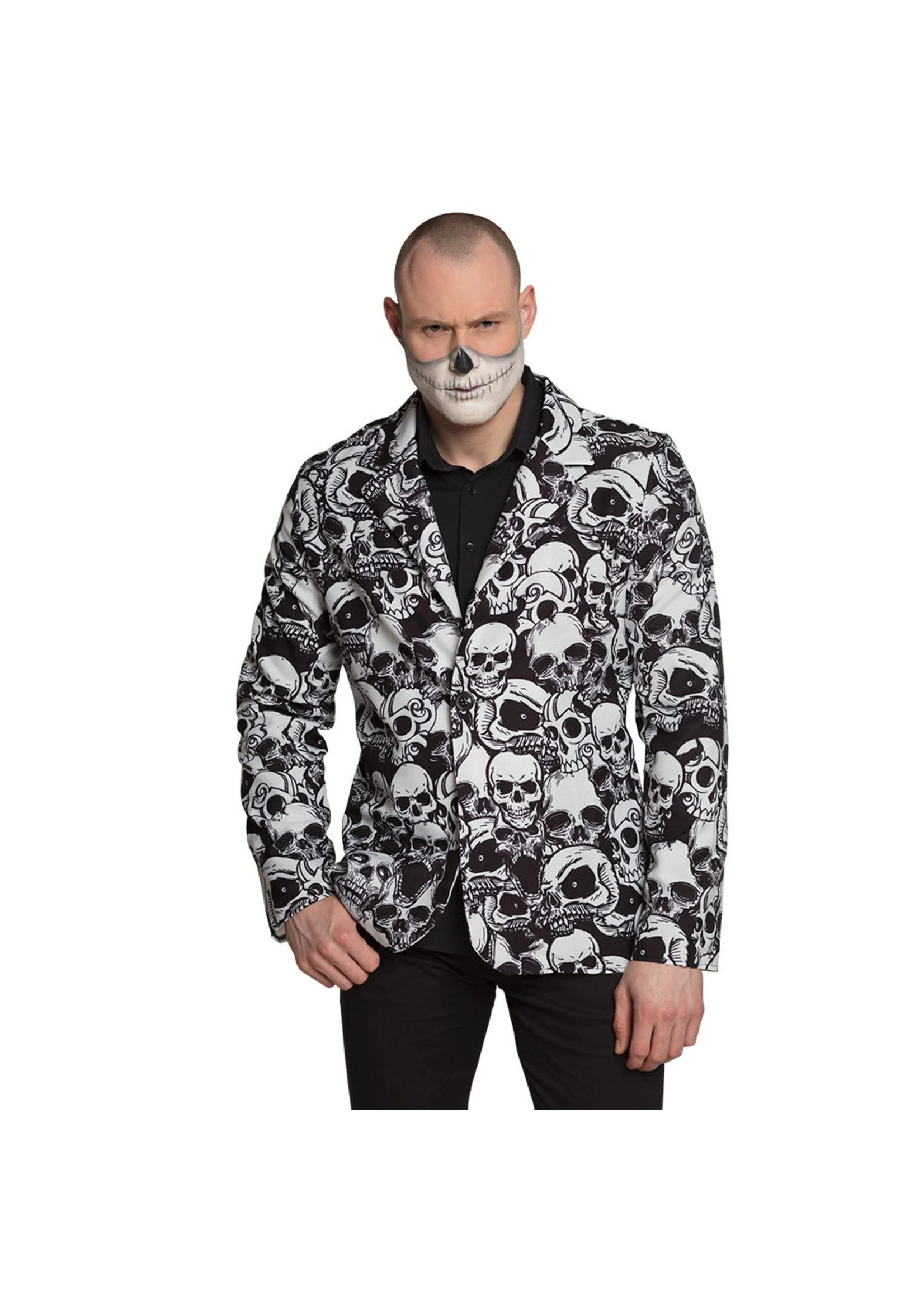 Steel de show met dit leuke Halloween jasje, met doodshoofden. Kijk op onze site voor bijpassende accessoires.