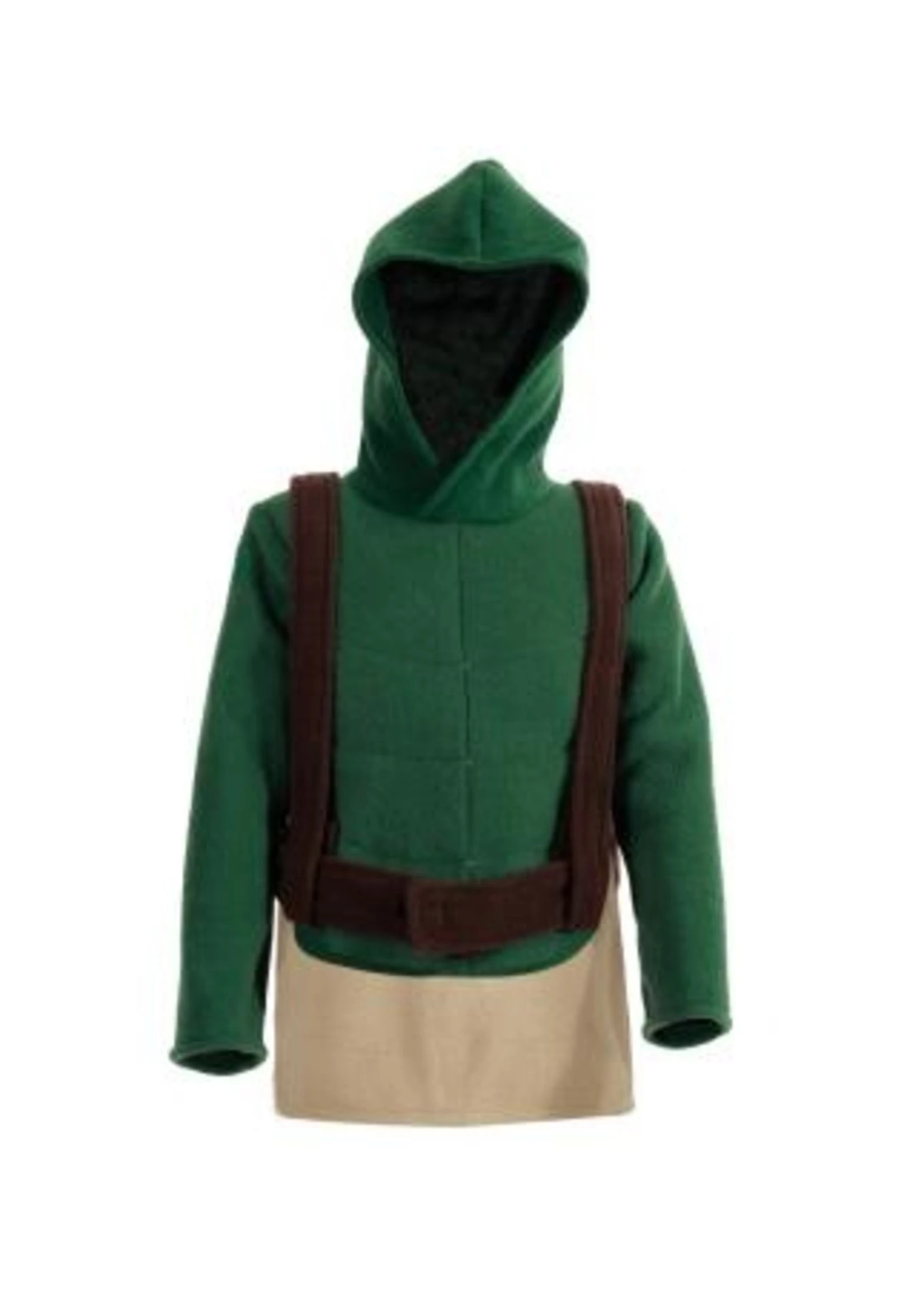Deze hes heeft een capuchon en een afneembaar rugzakje.
