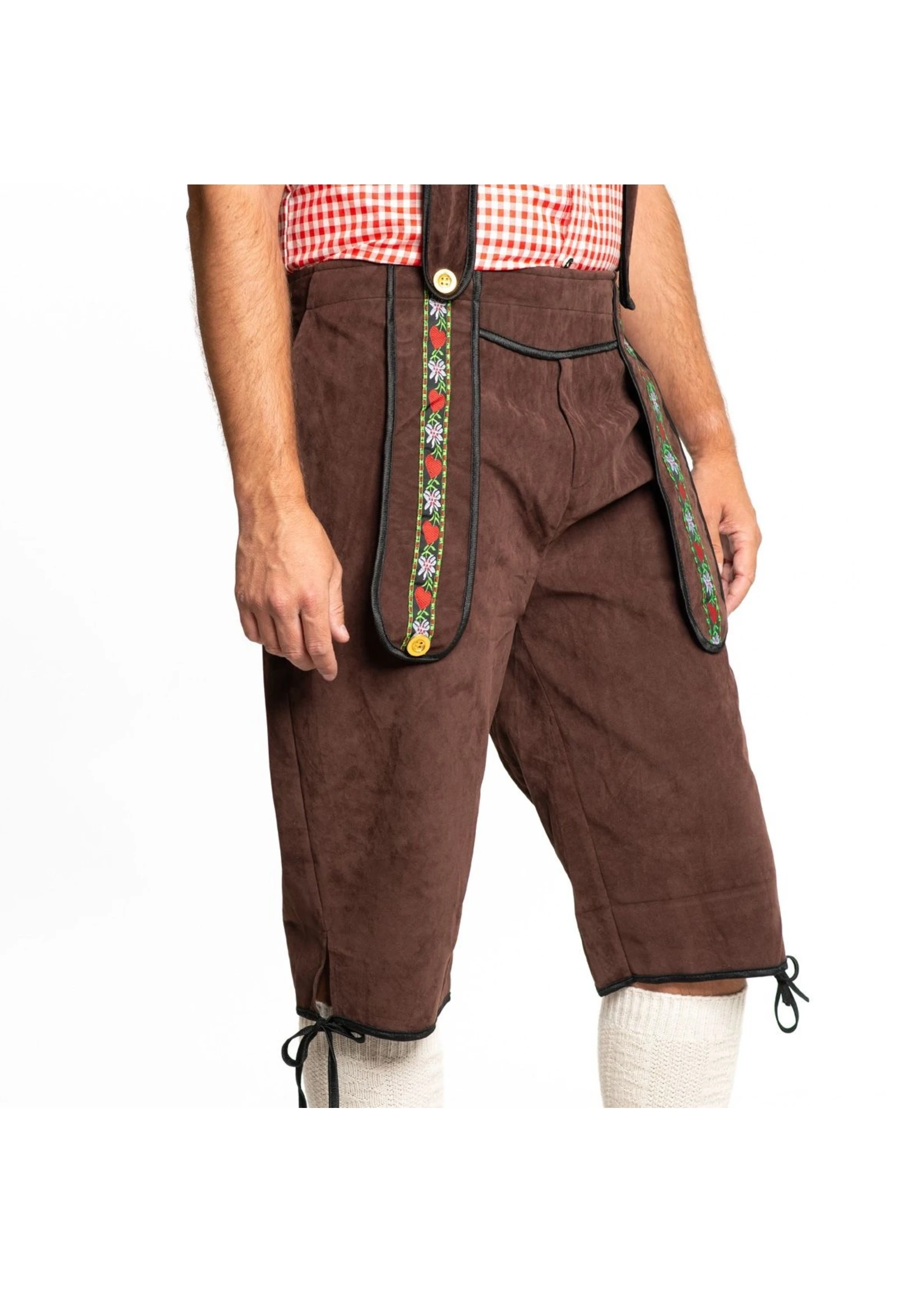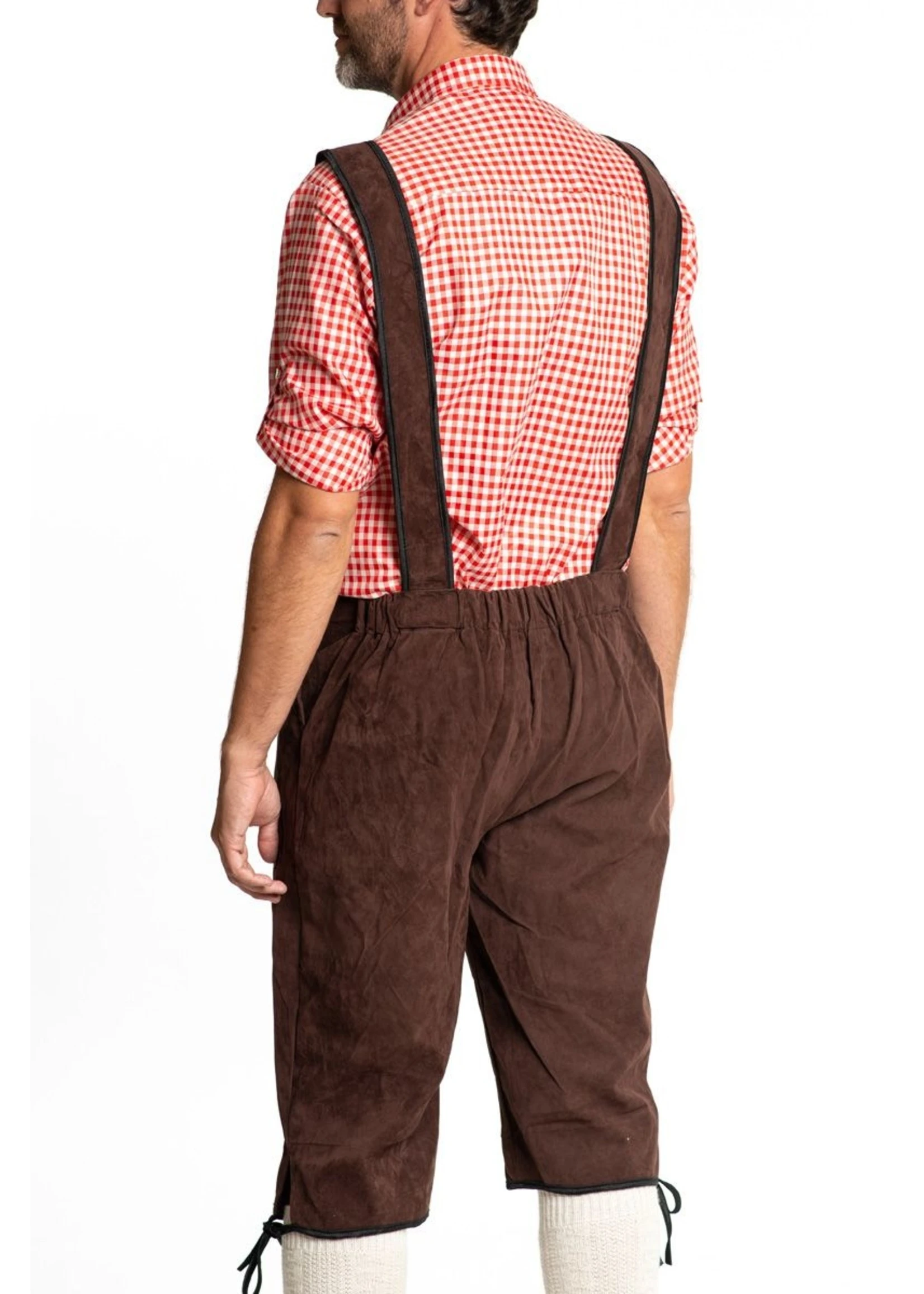 Donkerbruine Tiroler broek voor Oktoberfest, carnaval en themafeest landen (Duitsland, Oostenrijk).
