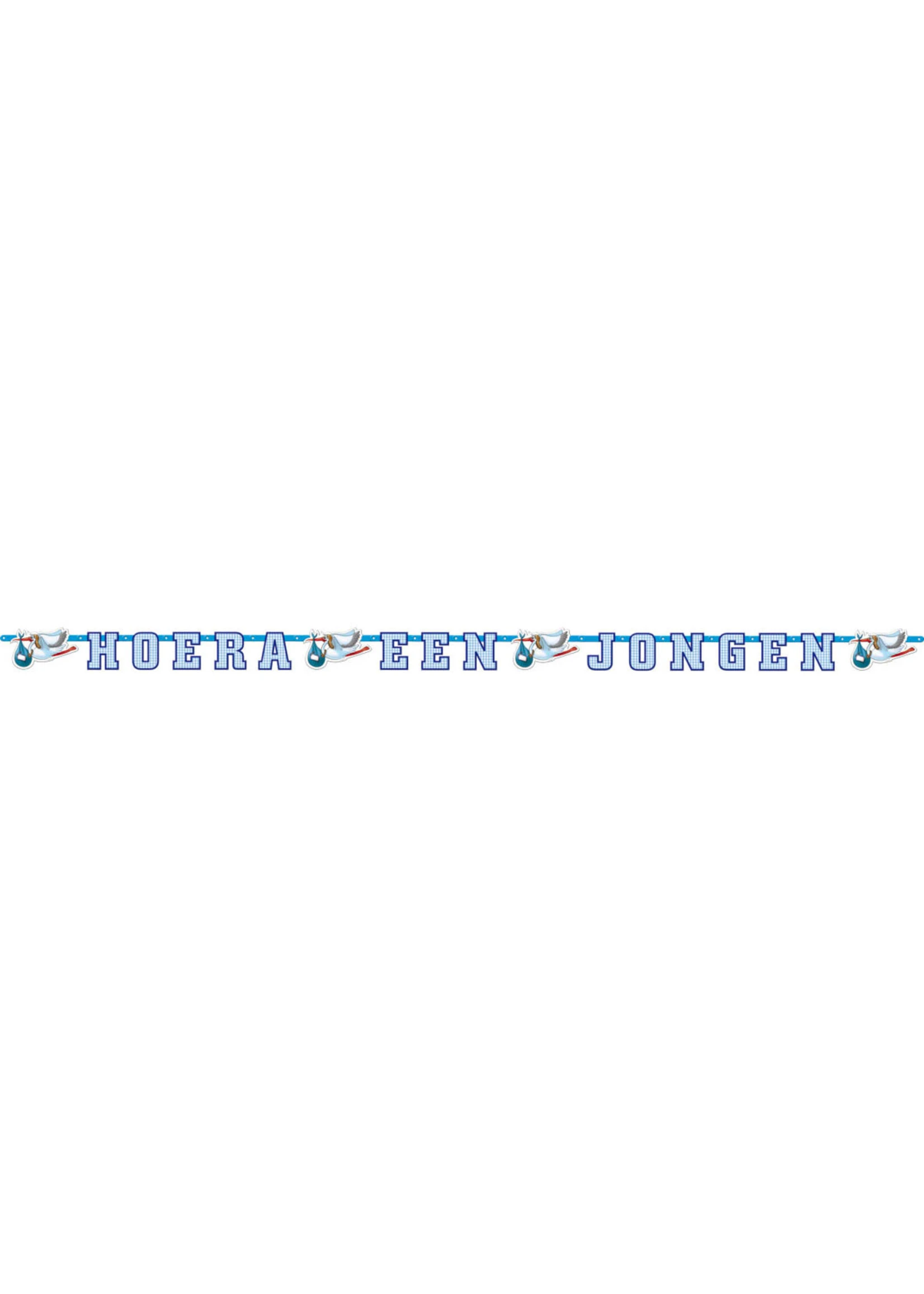 Vrolijke letterslinger “Hoera een Jongen”, met ooievaars.