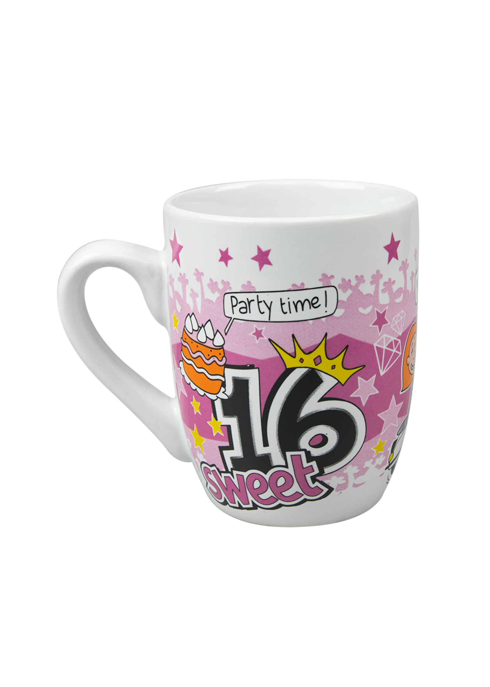 Deze mok met grappige tekening en tekst Sweet 16 is gemaakt van keramiek en door de unieke ‘cartoon’ style is deze mok een echte eyecatcher.