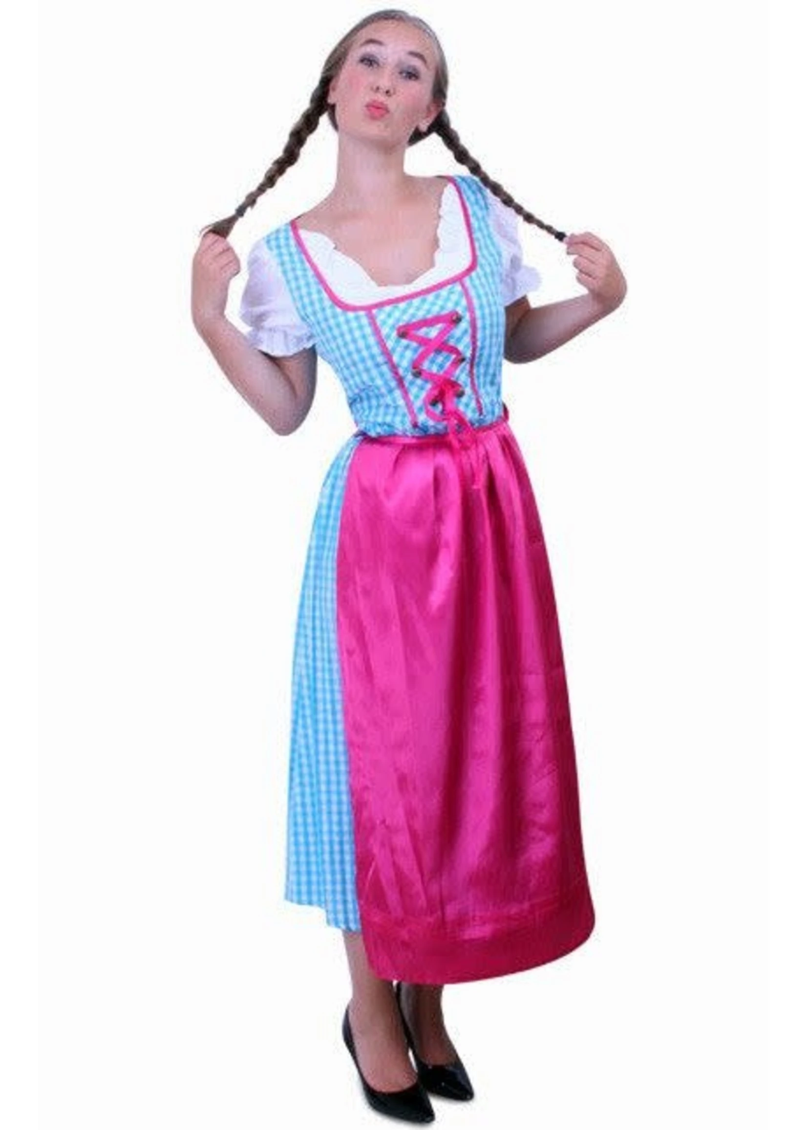 Traditionele Tiroler jurk met lange rok en roze schort, maat 44.