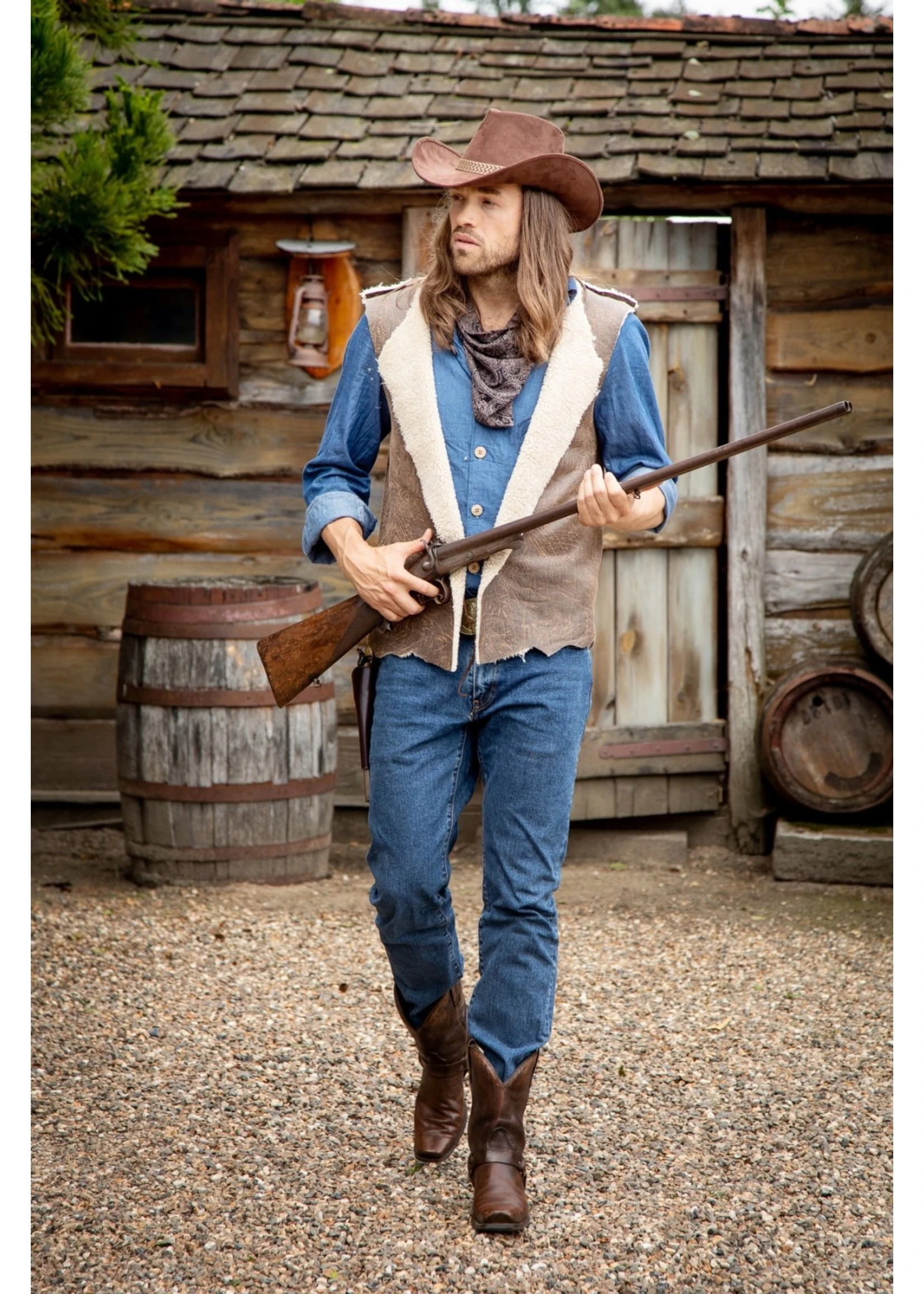 Maak de outfit compleet met een cowboyhoed, lasso en holster met pistool.